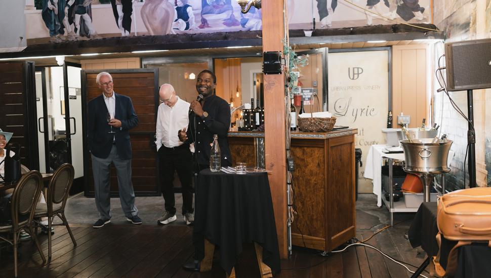LAMDA was delighted to announce two new annual David Oyelowo Scholarships, endowed by the MLDauray Arts Initiative, at a special event in Los Angeles in October. The evening brought together David and MLDauray donor Alan Davis, with a community of LAMDA staff, alumni and supporters. It was followed by a performance of our annual U.S. showcase at the Colony Theatre.