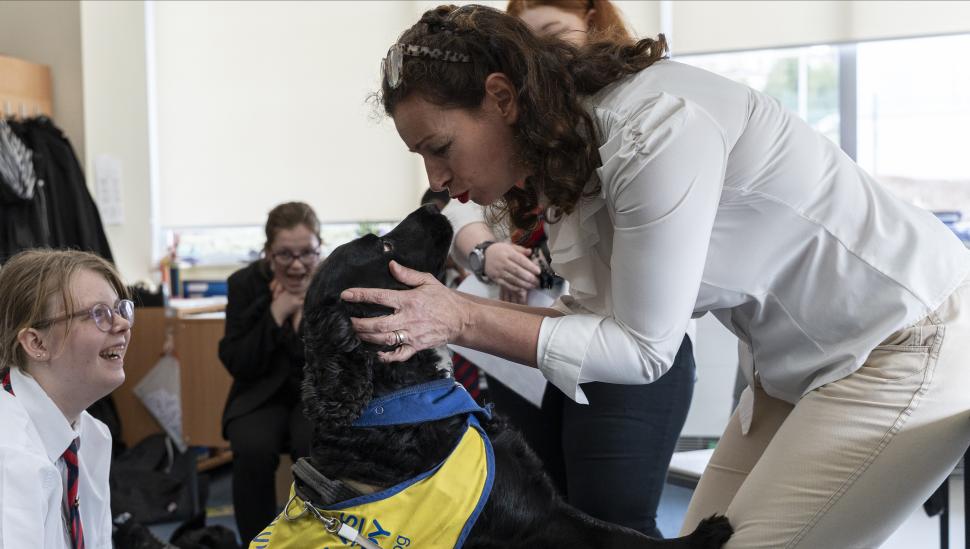 It’s this that lets her learners feel comfortable and build confidence. “Barney has been known to position himself next to someone who is dysregulated,” Cathy told us. But he even has a starring role in the performance they’re preparing together: “We interact with him, providing water, brush him, and feed him treats, as this features in our piece.”